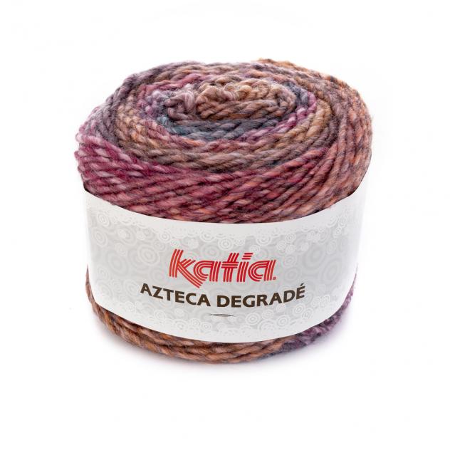 Azteca Degradé is garen van meerkleurig lint in gemarmerde en vrolijke kleuren. Met slechts twee bollen garen van Azteca Degradé kunnen leuke accessoires gemaakt worden zoals gebreide beenwarmers, mutsen met pompon of pluizige losse kragen.
