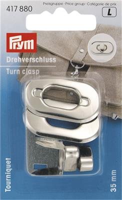 De draaisluiting van Prym is geschikt voor tassen, rugzakken, jassen en nog veel meer. De draaisluiting bestaat uit vier delen en is eenvoudig met metalen pennen op e stof te bevestigen.