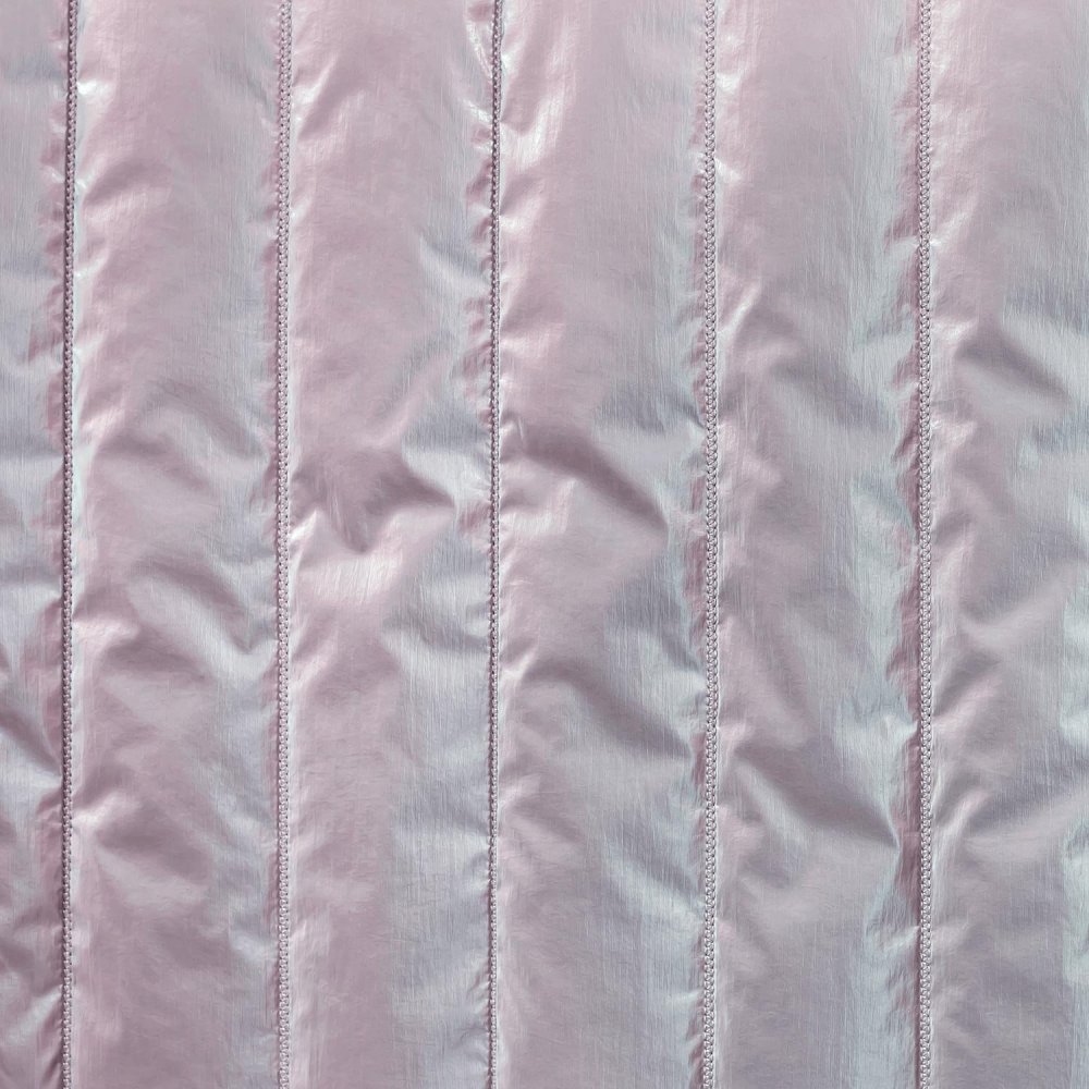 Padded Metallized is een lichte stof van 100% polyester met een metallic afwerking. De gewatteerde stof is horizontaal doorstikt en geschikt voor het maken van jassen, jacks en bombers.