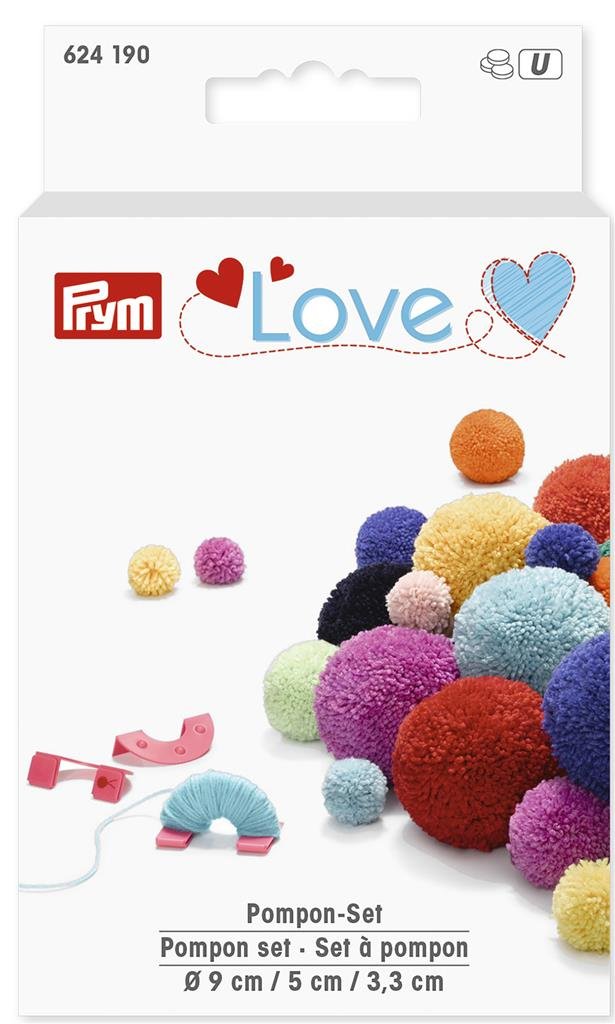 Met het pomponsetje van Prym kan je pompons maken van 3,3 cm, 5cm en 9 cm.