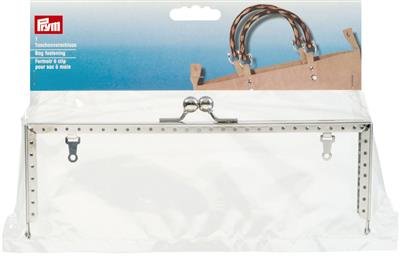 Deze glanzende metalen sluiting van Prym is geschikt voor het maken van allerlei tasjes en DIY projecten. Aan de haakjes kan eenvoudig een passend tashengsel bevestigd worden. De stof, haak- of breiwerk wordt met de hand aan de sluiting vastgenaaid.