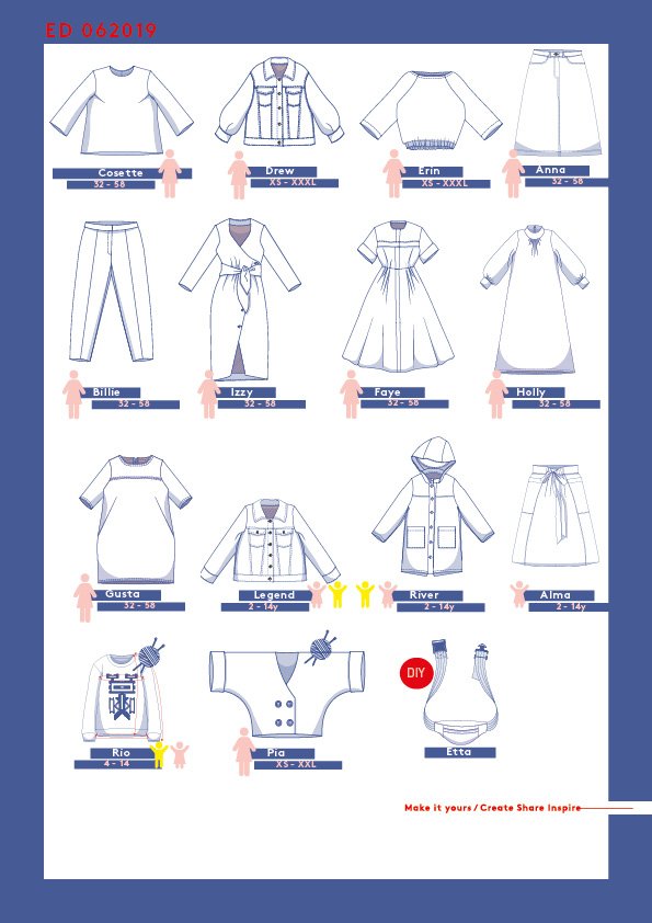 Herfsteditie met naaipatronen voor onder andere jurken Holly, Gusta, Izzy en Faye, jasjes Drew en Legend, broek Billie én makkelijke breipatronen om lekker knus te breien.