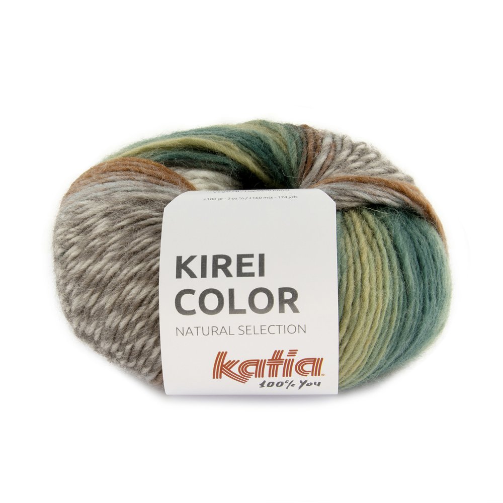 Bol van 100 gram 100% merino superwash wol met opdruk. In iedere bol van Kirei Color combineren we levendige kleuren met streepjeseffect met jaspé stroken in natureltinten. U kunt deze kleuren ook combineren met de effen kleuren van Kirei.