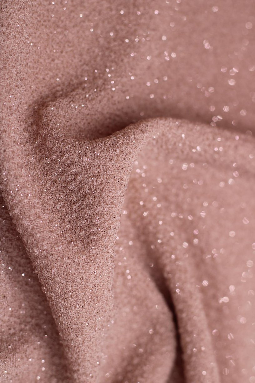 Deze soepele en rekbare stof heeft een fijne glitter touch en is geschikt voor truitjes, kleedjes en jasjes.