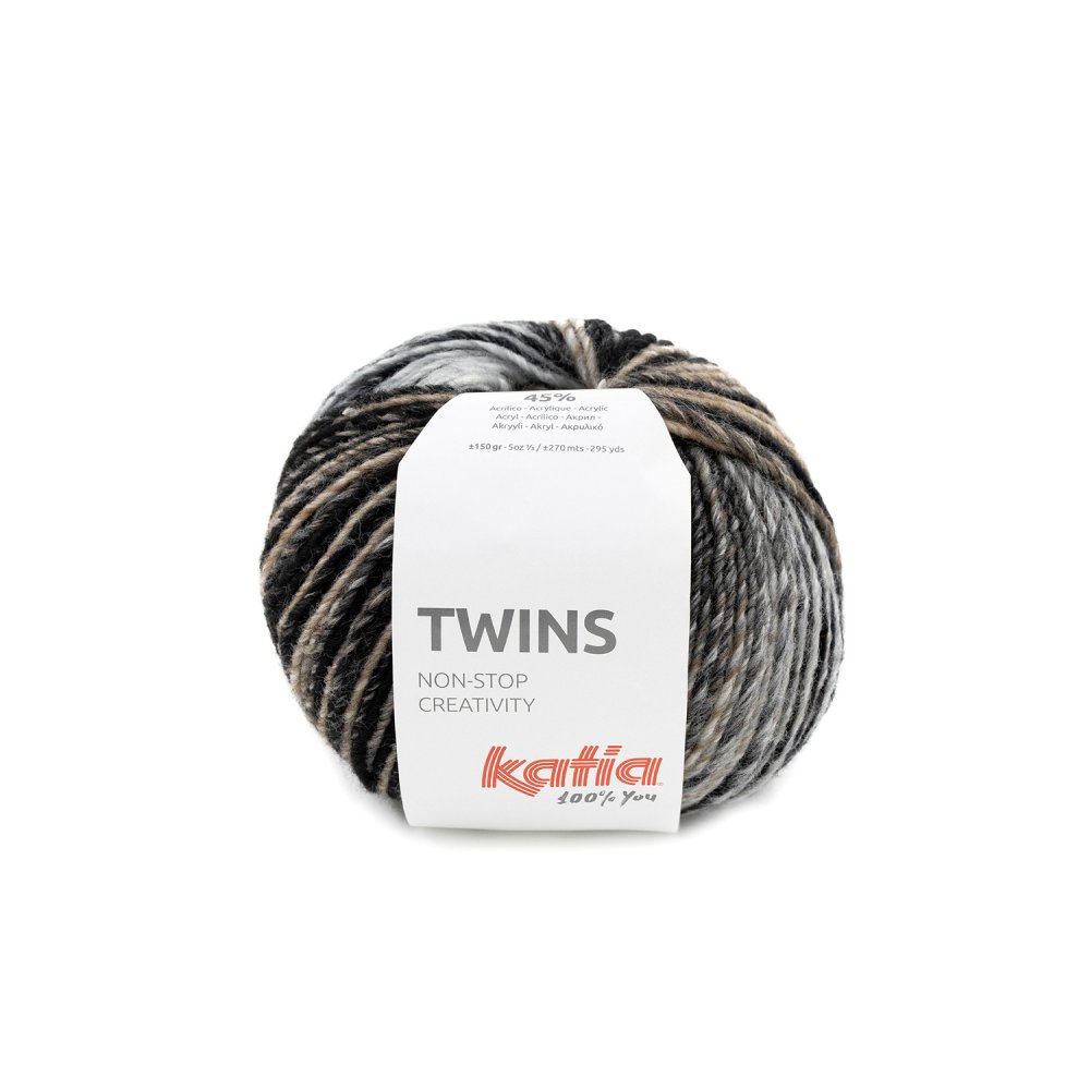 Twins is een fantasiewol met een effect van wazige strepen over gegradeerde koude en warme kleuren. Het garen is zeer geschikt voor warme truien.